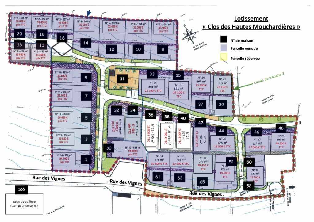 Lotissement »du Clos des Hautes Mouchardières »: Parcelles à partir de 25 € TTC le m2.